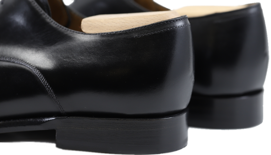 This Black box calf, tinted in the mass, has the advantage of being resistant while remaining dressed with the possibility of making a "glaçage".