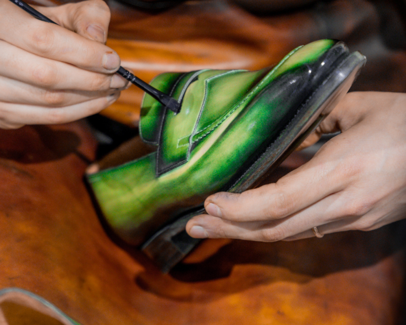 Soyez en tout cas certain de l'authenticité de votre paire de chaussures patinée : cette personnalisation est un travail artisanal, la même patine ne peut jamais être exactement reproduite. Même en se rapprochant d'un modèle, vos chaussures seront uniquement à l'image de la combinaison de vos envies et de notre savoir-faire.