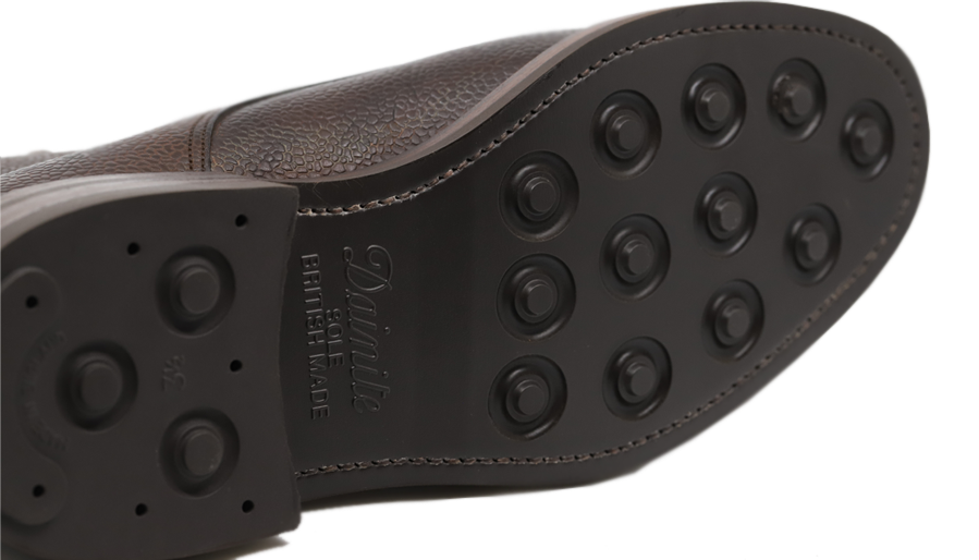 - Upper - Natural pebble grained hand-dyed chocolate calf