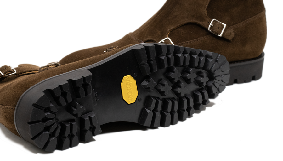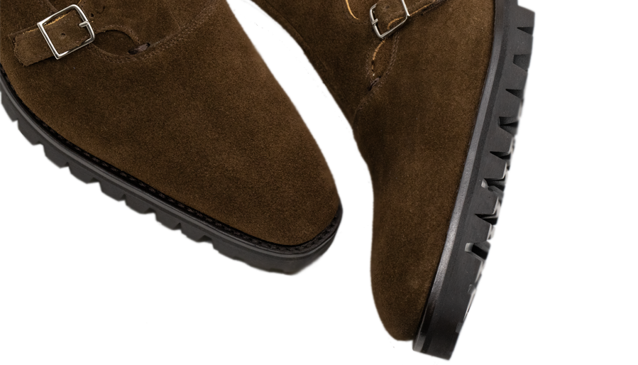 Signature model of the Maison. Born in 2013, Tobar was the first triple monks at the time. This is a Balmoral boot dressed by its three buckles, as a pure inspiration from the Belle Epoque. Discover its more sporty version, exceptionally stripped of it's cap toe and mounted on a Commando Vibram rubber sole, in a limited edition of course!