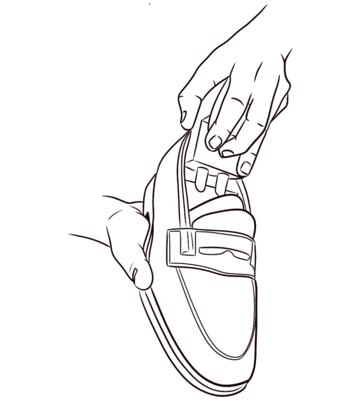 - Avant de débuter l’entretien, veuillez à retirer les lacets, afin d’éviter de les salir mais aussi pour faciliter l’utilisation des différents produits. Placez les embauchoirs en bois dans les souliers afin de leur redonner la forme d’origine.