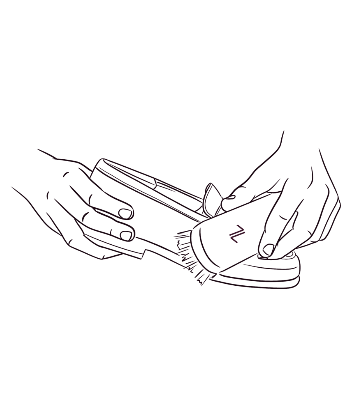 - À l’aide de votre brosse à reluire en crin de cheval, brossez énergiquement sans appuyer, vos souliers pour ôter tout le surplus de saleté (poussière, graviers, différents résidus…). N’hésitez pas à insister sur la trépointe.