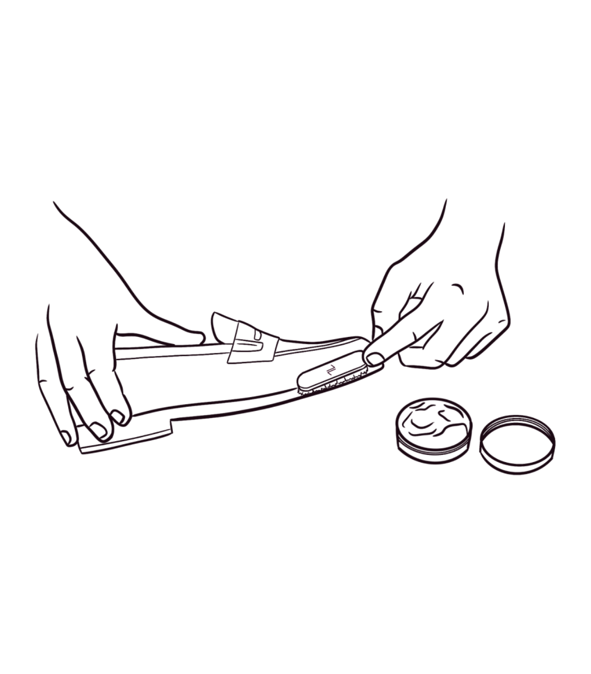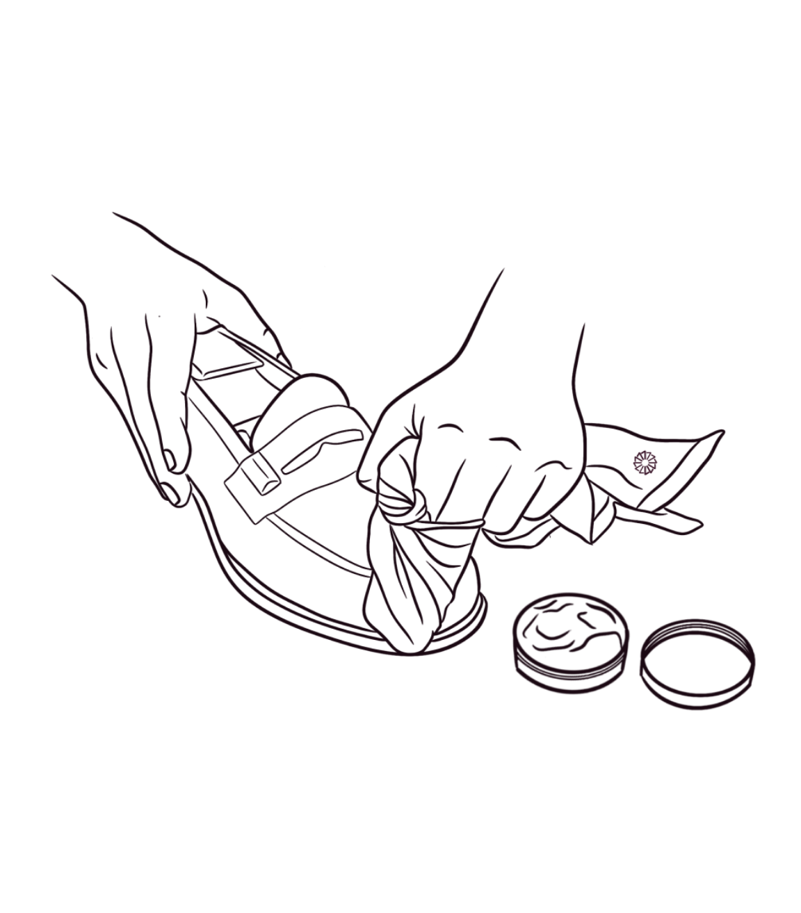 - Nous vous conseillons d’utiliser un cirage un petit peu plus foncé que le cuir de votre soulier afin de lui donner une très légère patine au fil des entretiens et par la même occasion éviter de faire ressortir les plis du cuir.