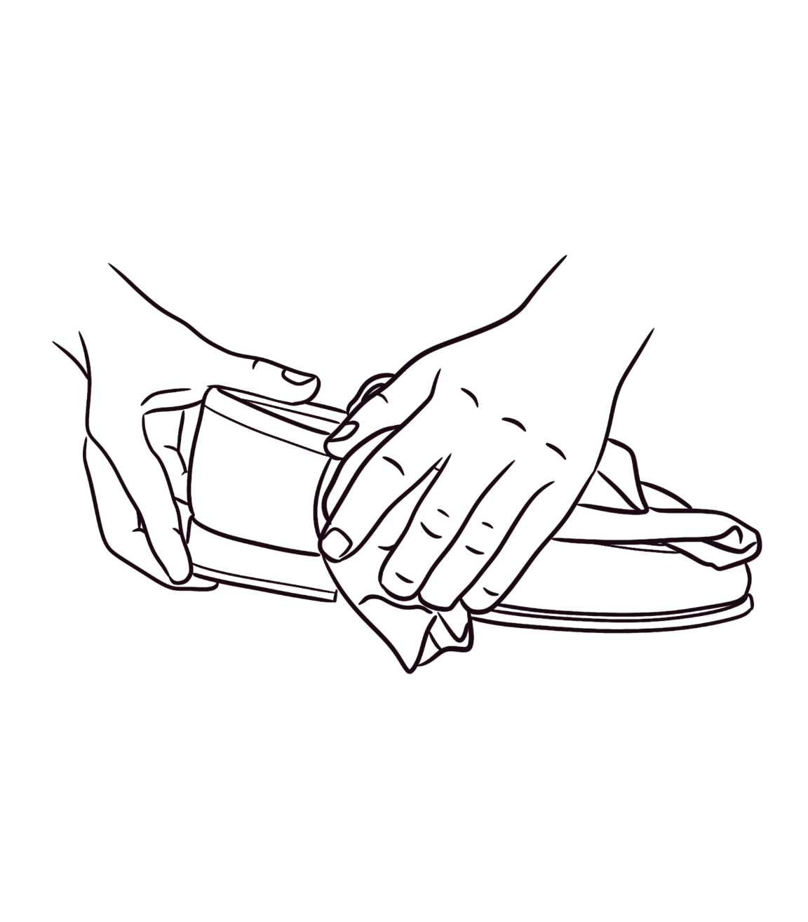 - Vous pouvez également frotter le talon et le flanc de la semelle afin de bien les faire briller.