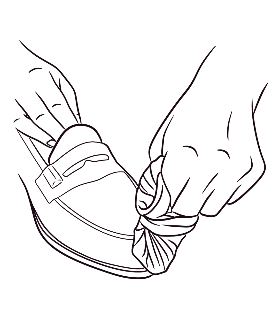 - Reprenez votre chiffon enroulé autour de l’index et du majeur et appliquez un petit peu de cirage sur l’ensemble de votre soulier.