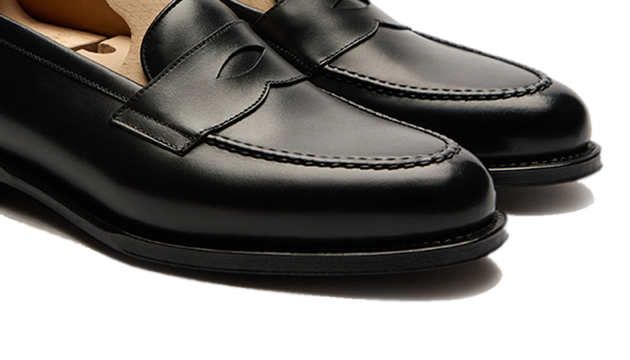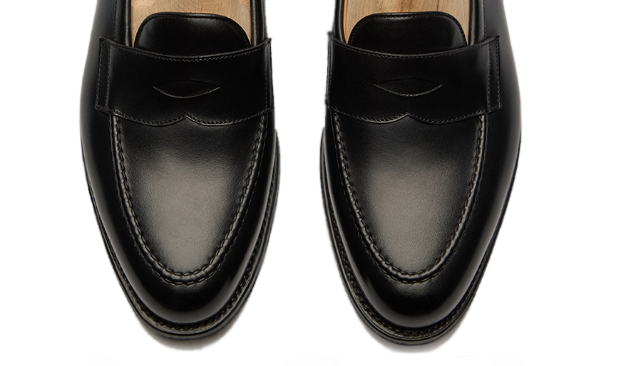 Le box calf noir utilisé est un cuir de veau pleine fleur, teinté dans la masse. Il présente l'avantage d'être résistant tout en restant habillé, avec notamment la possibilité d'y faire un glaçage.