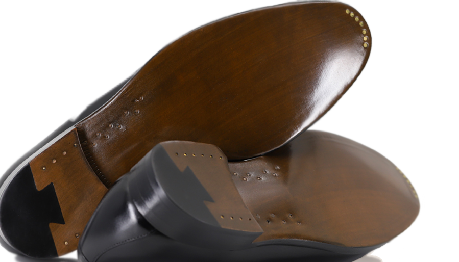 - Semelle - Cuir sous gravure fermée, cambrion en relief, double chevillage bois